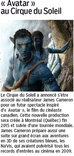Le Québec dans le monde: le Cirque du Soleil se paie Avatar et fait le tour du monde