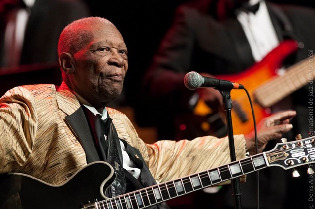 La première fois que j’ai vu BB King, c’était dans ce formidable rassemblement des géants du blues, le 12 octobre 1980 au CEPSUM de l’Université de Montréal (avec Muddy Waters, John Lee Hooker et James Cotton, oui oui, le même jour sur la même scène…). Dans le groupe, BB 1er se distinguait. Vêtu d’un habit bleu électrique pour le moins saisissant et entouré des plus beaux membres de la cour qui l’accompagnaient allègrement pour son heure et quelque de perfor. C’était à l’époque où son BB King Orchestra jouait pour lui et non pas à côté de lui. Samedi soir, c’était à pleurer de le voir ainsi abandonné par sa gang. Un vieux monsieur, épouvantablement seul sur sa chaise, qui jouait un You Are my Sunshine digne d’un débutant sans talent et tenant des propos totalement décousus. L’horreur. À 88 ans, qui donc le pousse à ainsi se déshonorer sur scène? On est ici en droit de parler d’acharnement mercantile. Ne cherchez pas ailleurs, sa gérance et ceux qui le retiennent encore sur la route sont les seuls vrais responsables.