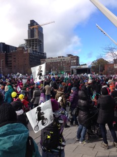 L’événement a culminé avec un spectacle du groupe «Les Petites Tounes» et la présentation de plusieurs discours militants devant la foule, qui débordait de la rue Sainte-Catherine à Jeanne-Mance.