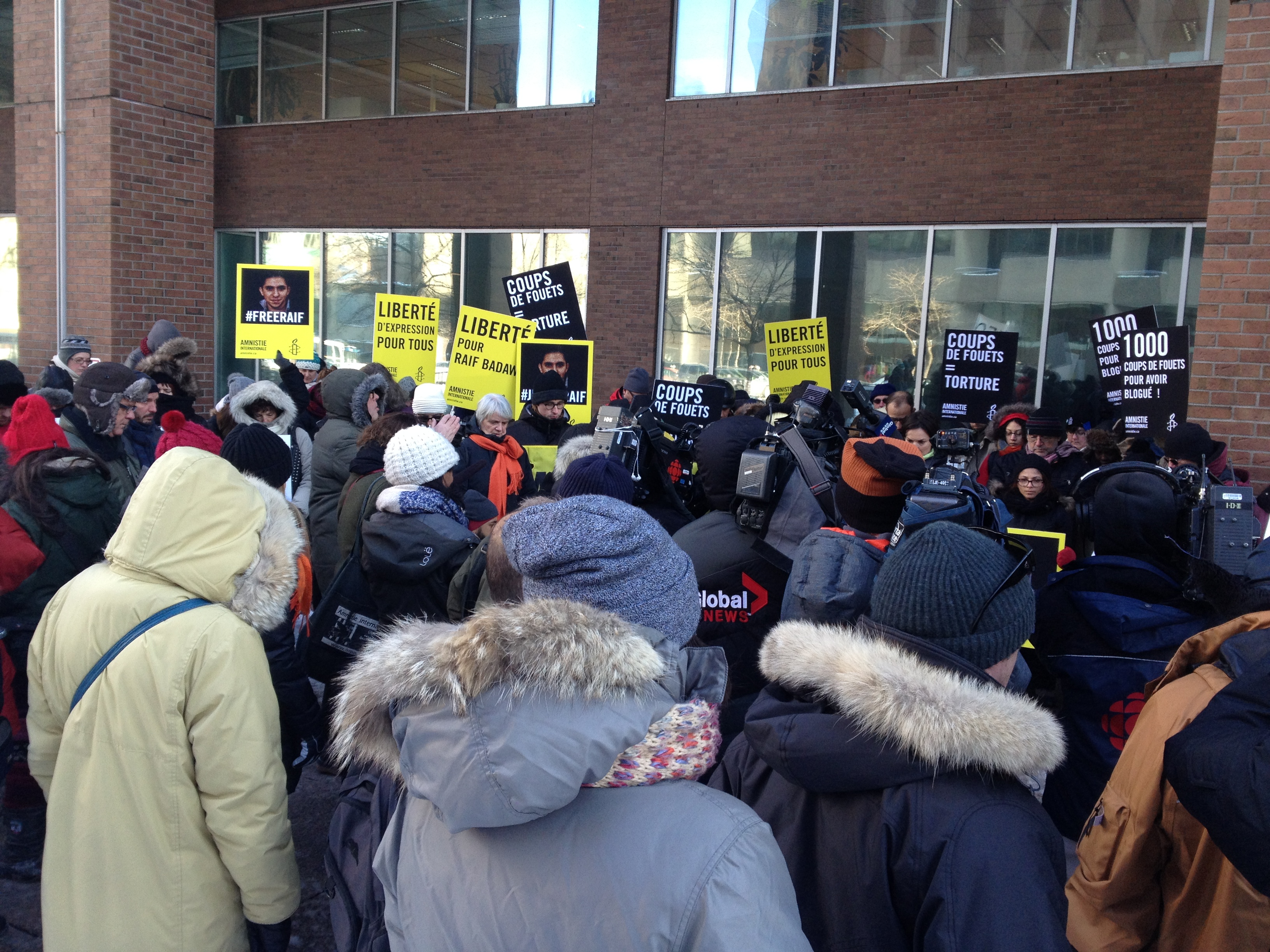 «Nous demandons une condamnation ferme de la plus haute autorité du pays, a exprimé Anne Sainte-Marie, porte-parole d’Amnistie internationale Canada. Nous réclamons la libération immédiate de M. Badawi afin que les prochains coups de fouets, prévus vendredi, ne soient pas donnés. Nous demandons aussi la réunification de la famille.»