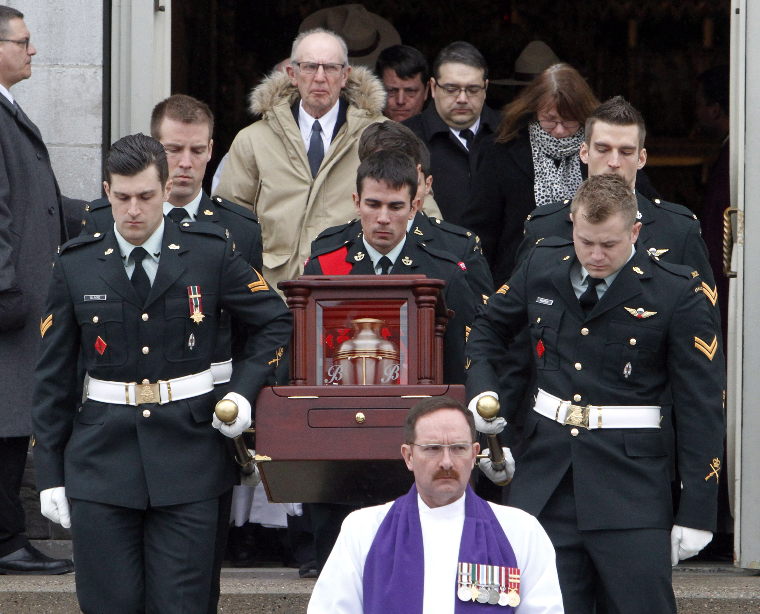 Au terme de la cérémonie funéraire privée à la cathédrale de Notre-Dame, quatre membres de l’armée ont transporté l’urne du sergent dans un corbillard. Le cortège funèbre s’est ensuite rendu à un cimetière de l’armée.