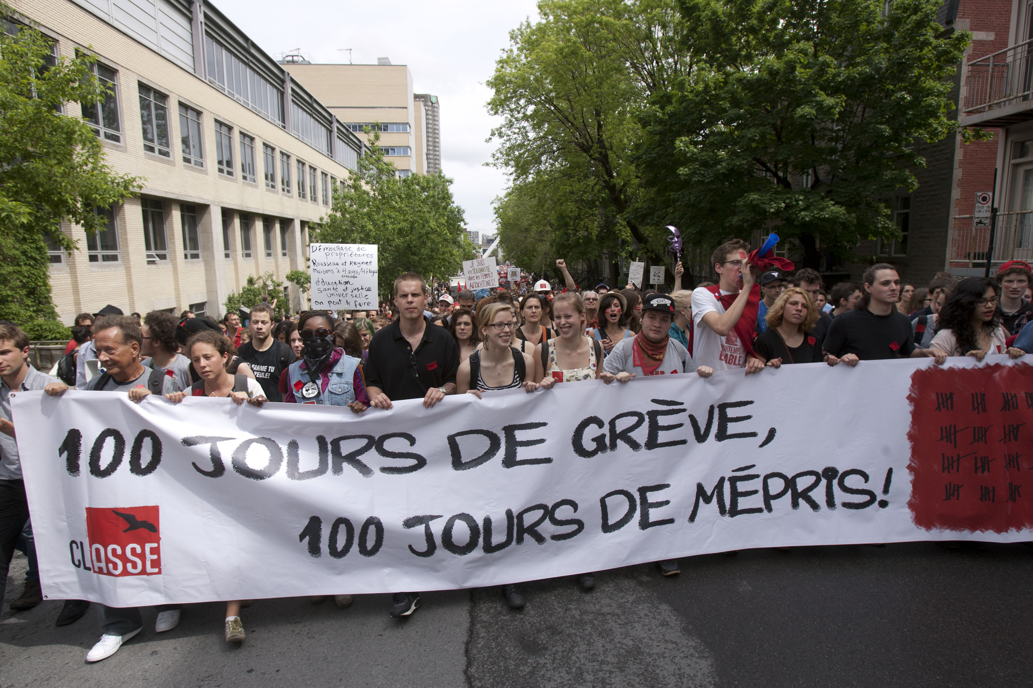 Martine Desjardins, présidente de la Fédération étudiante universitaire du Québec (FEUQ) ajoute que les étudiants se sont donnés ce droit en accord avec la définition du mot «grève» dans le dictionnaire. «La grève signifie un refus, qu’on se retire d’une situation pour des fins politiques et donc, on cadrait dans cette définition», dit-elle.