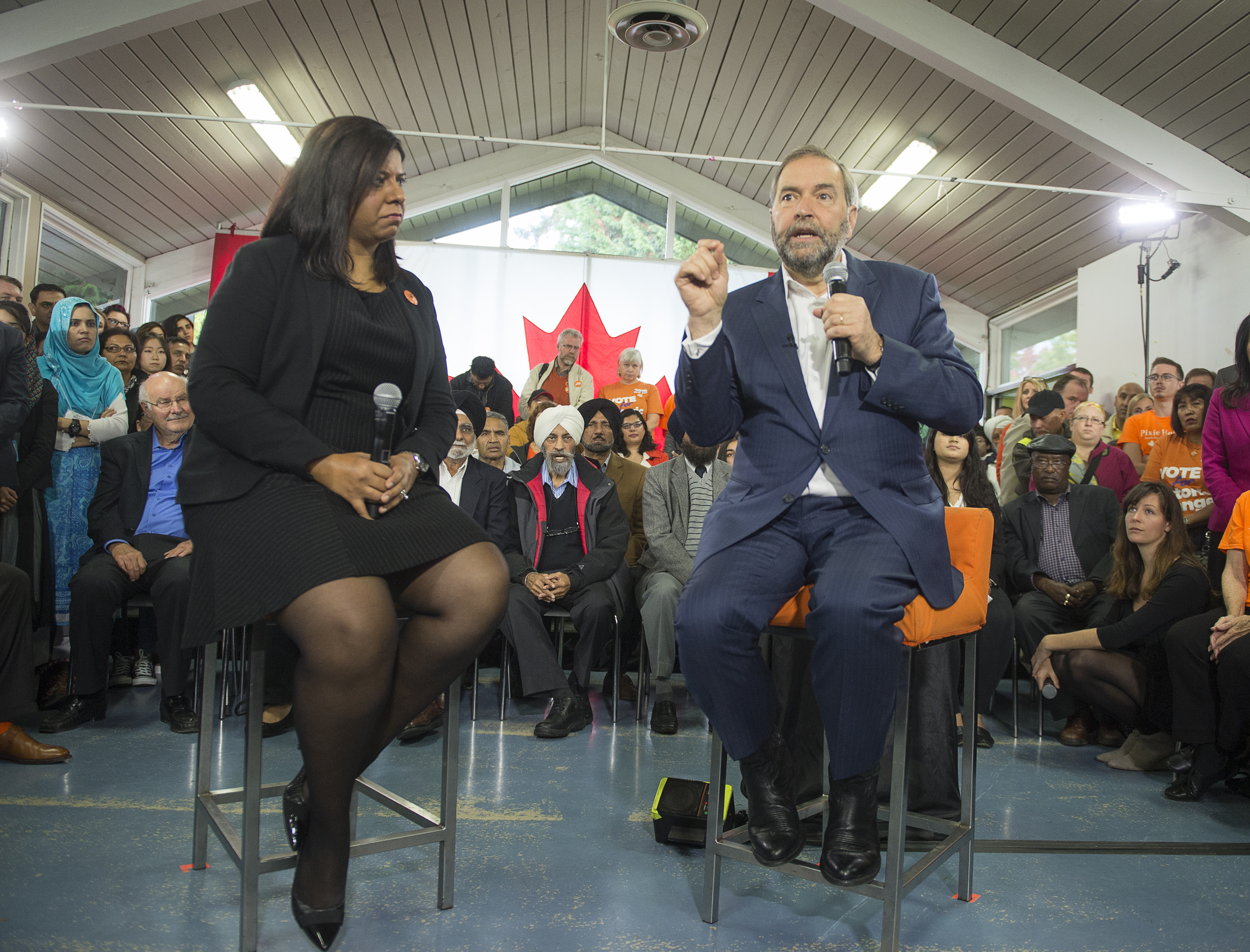 M. Mulcair a participé à une assemblée locale au cours de laquelle il a répondu à des questions faciles posées par des partisans au sujet des périodes d’attente et de l’accès à des médicaments abordables.