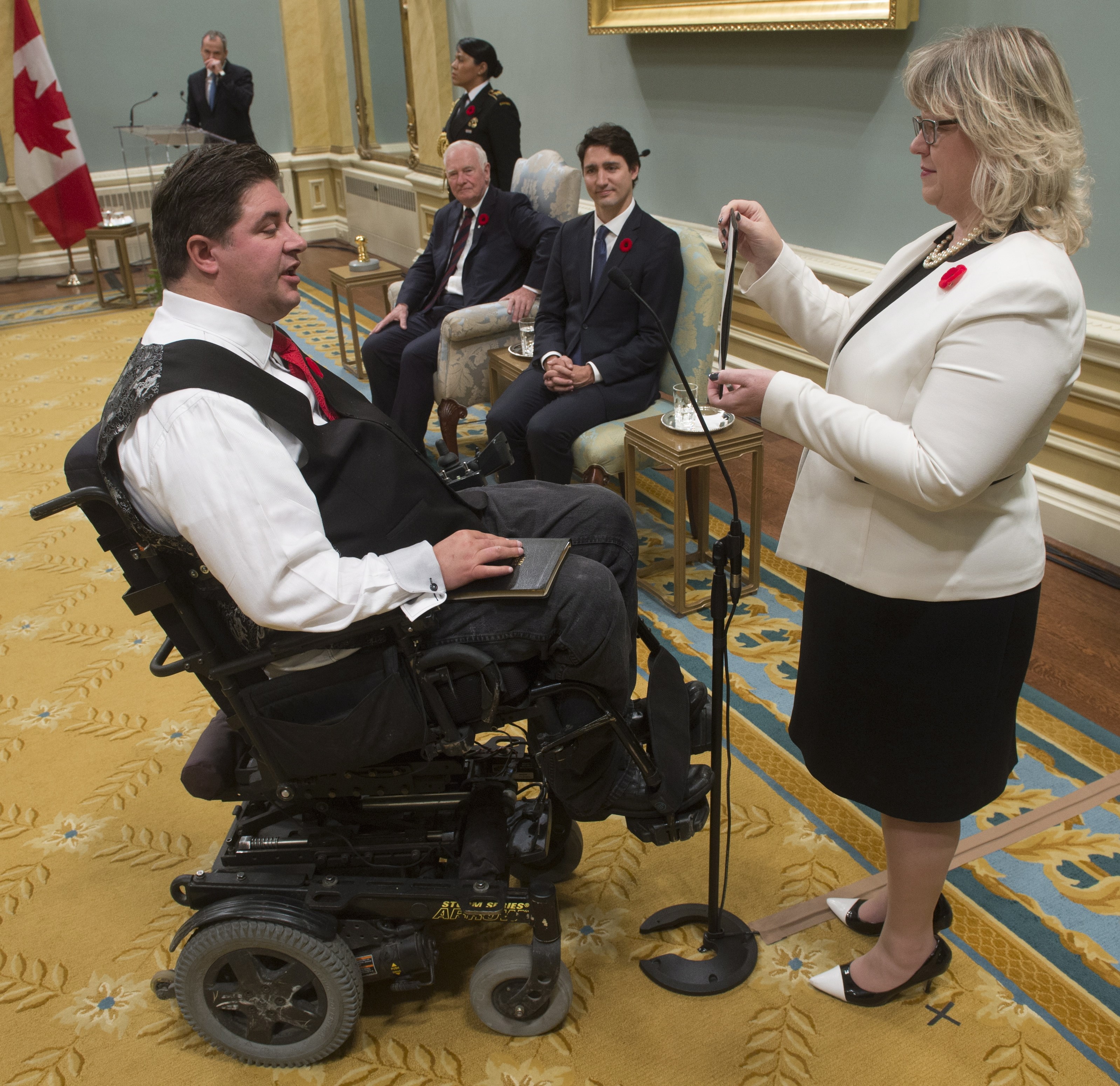 Carla Qualtrough, ministre des Sports et des Personnes handicapées, est une athlète paralympique née avec une déficience visuelle. Elle a été présidente du Comité paralympique canadien. Kent Hehr, ministre des Anciens combattants et ministre associé de la Défense, se déplace quant à lui en chaise roulante depuis qu’il a été blessé par une balle perdue en 1991.