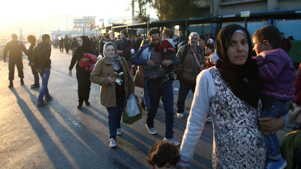 MYTILENE, GREECE - NOVEMBER 10: Migrants walk to board a ferry to Athens in Mytilene port on November 10, 2015 in Lesbos, Greece. Dozens of rafts and boats continue to make the journey from Turkey to Lesbos each day as thousands flee conflict in Iraq, Syria, Afghanistan and other countries. Over 500,000 migrants have entered Europe so far this year and approximately four-fifths of those have paid to be smuggled by sea to Greece from Turkey, the main transit route into the EU. Most of those entering Greece on a boat from Turkey are from the war zones of Syria, Iraq and Afghanistan. (Photo by Carl Court/Getty Images) Photo: Getty Images
