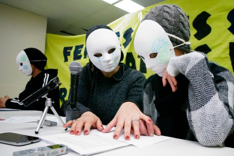 Six femmes se sont présentées dimanche devant les médias le visage couvert de masques blancs ou en forme de papillon. C’est pour pouvoir montrer leur visage au grand jour qu’elles réclament la régularisation de leur statut au Canada.