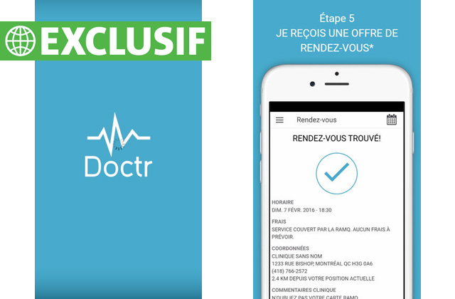 Pour faire le lien entre les patients et les médecins qui veulent remplir leur horaire dans un court laps de temps, des jeunes entrepreneurs ont créé Doctr Check-in (Android et Apple), qui est disponible dès maintenant en projet pilote à Montréal.