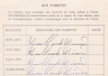 À partir de ce moment, dès que Pauline avait à signer un quelconque document – rien de légal, on s’entend, parce qu’à cette époque, les femmes n’en avaient tout simplement pas le droit –, ma mère écrivait automatiquement le nom de mon père en lettres bien lisibles. Quand elle recevait nos bulletins scolaires, quand elle remplissait des coupons de tirages, peu importe, c’était toujours Madame Claude suivi du nom de famille de l’homme qu’elle avait épousé. Ce nom, elle l’enfilait comme s’il s’agissait de son costume officiel.