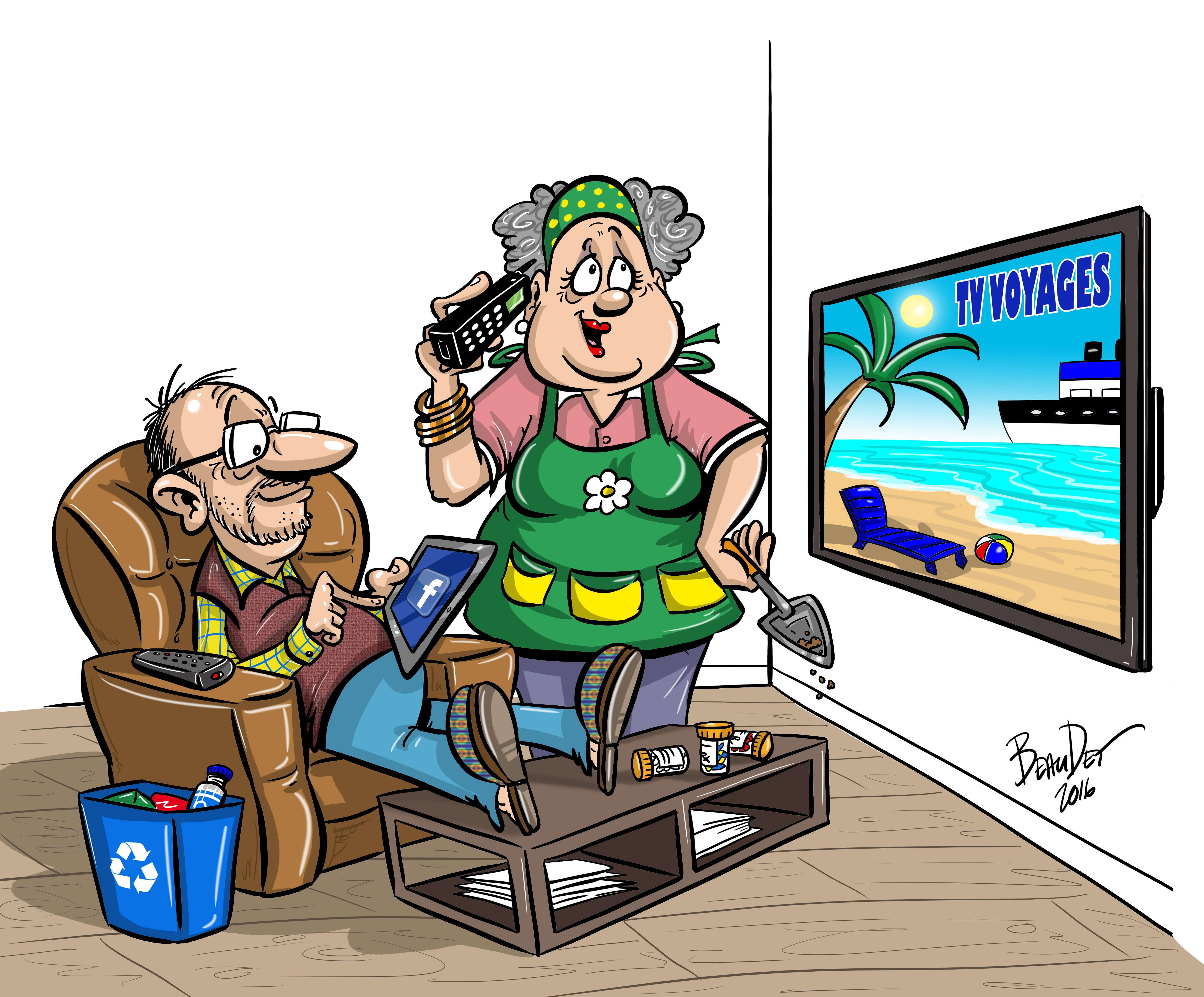 S’il y a une chose à laquelle Michel et Sylvie sont fidèles, c’est bien leur résidence. Ils possèdent en moyenne leur maison depuis 12 ans, et pour 44% des gens de leur âge, c’est la seule propriété qu’ils ont possédée au cours de leur vie. Attachés à ce lieu où ils ont élevé leurs deux enfants, ils comptent y vivre encore 14 ans, à moins que leur état de santé ne les en empêche. Quand ils ne reçoivent pas parents ou amis à souper à la maison, Michel et Sylvie aiment bien bricoler ou jardiner, histoire de bien entretenir leur petit nid d’amour. Autre passe-temps qu’ils affectionnent: la télévision! Que soit pour s’informer ou pour s’évader en regardant leur téléroman favori, le petit écran est leur loisir préféré.