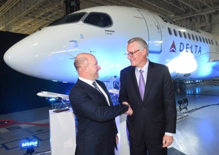 M. Bellemare était notamment accompagné du nouveau président de Delta, Ed Bastian, ainsi que du ministre québécois des Affaires municipales, Martin Coiteux, pour annoncer la commande ferme de 75 appareils CS100 du transporteur d’Atlanta estimée à 5,6 milliards $ US selon les prix affichés.