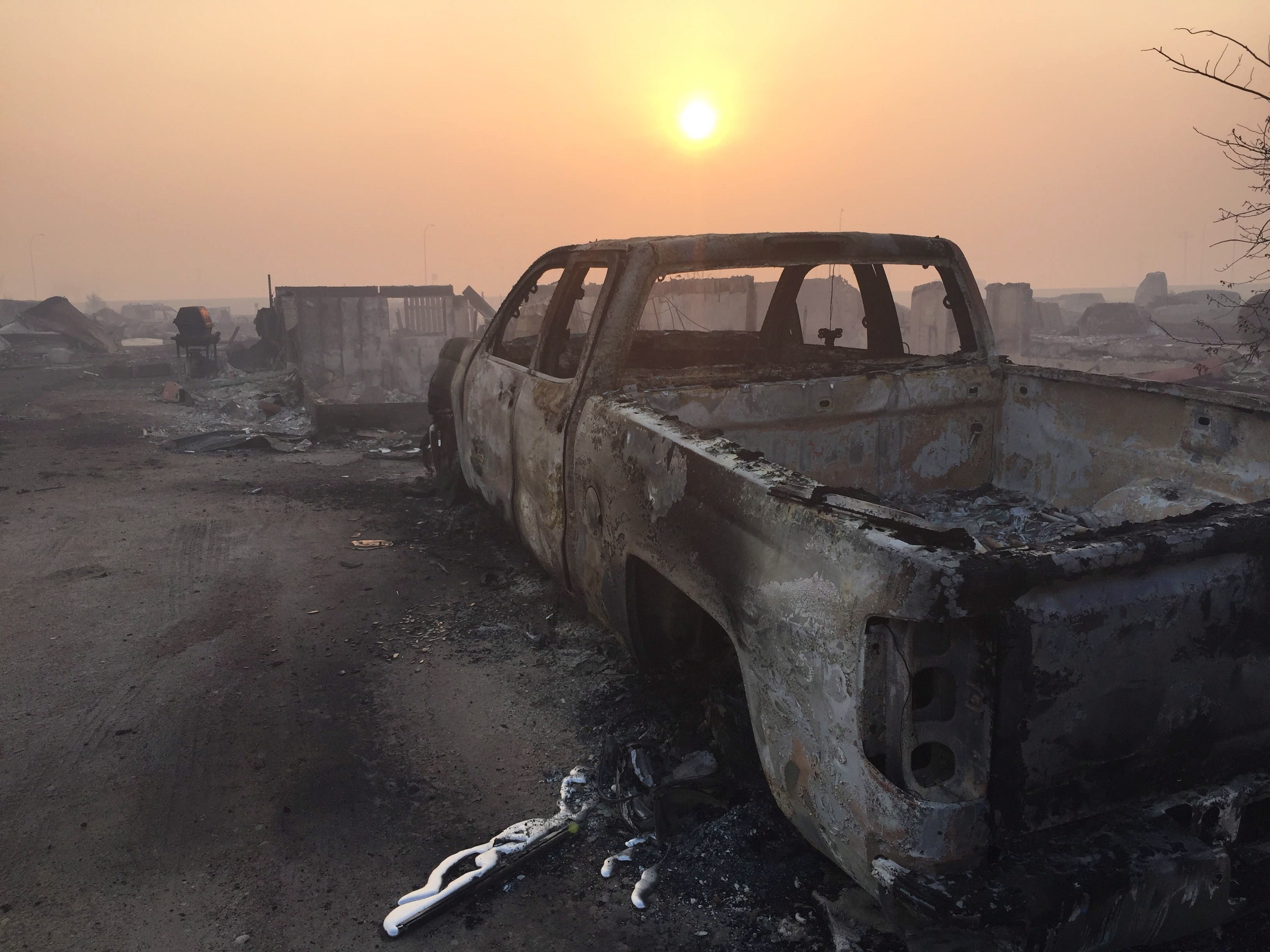 A burned-out truck in the Beacon Hill area of Fort McMurray, Alta. is shown on Wednesday, May 4, 2016. THE CANADIAN PRESS/HO-Radio-Canada-Sylvain Bascaron