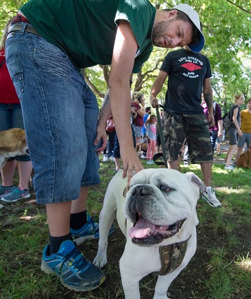 L’organisatrice de la marche, Dana Hyde, a affirmé que le rassemblement de cette année avait une signification particulière parce que le maire Denis Coderre a annoncé l’intention de la Ville de Montréal de bannir les pitbulls et d’autres types de chiens jugés dangereux à partir du mois de septembre.