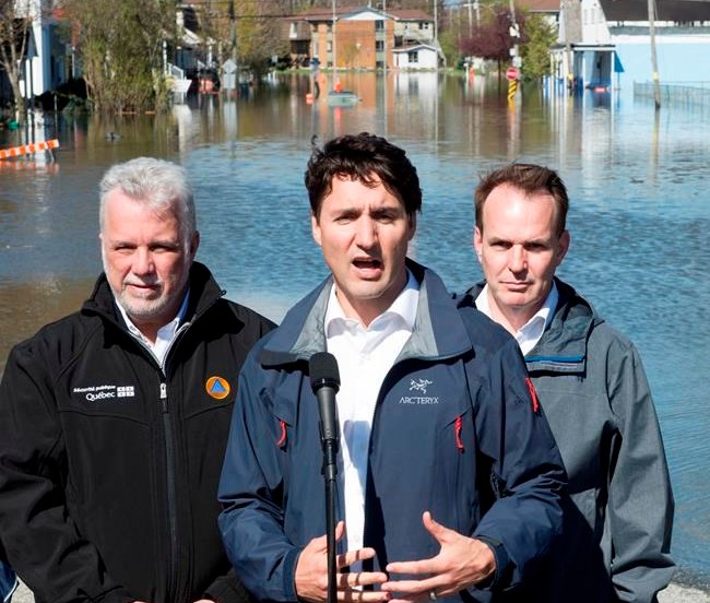 GATINEAU, Qc — Philippe Couillard est retourné à Gatineau jeudi matin pour survoler, avec Justin Trudeau, les zones inondées. Les deux premiers ministres ont pu constater du haut des airs,