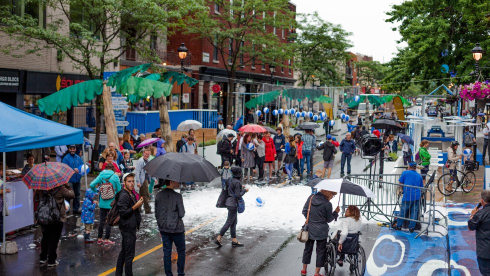 L’espace public de la rue Wellington, entre les rues Galt et de l’Église, a été inauguré sous la pluie jeudi. Imaginé en collaboration avec une quarantaine de citoyens, le lieu