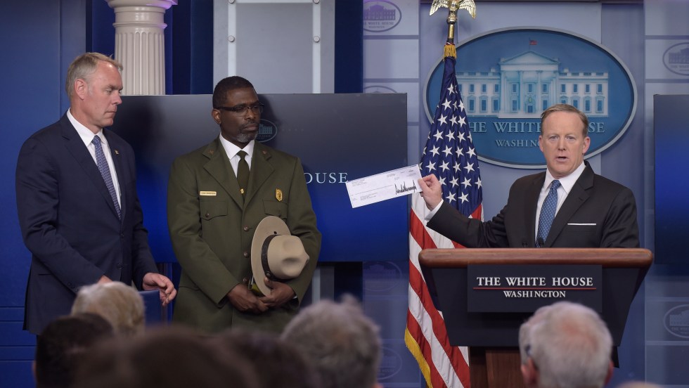 Le président des États-Unis, Donald Trump, a donné lundi le salaire de son premier trimestre au National Park Service (NPS). Le sécrétaire d’État, Sean Spicer, a ainsi présenté un chèque