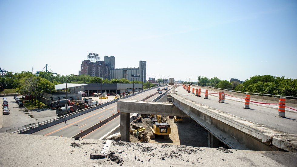 Les 800 mètres de voies surélevées de l’autoroute Bonaventure seront bientôt réduits en poussière. La deuxième phase du démantèlement a commencé mardi. La démolition complète de cette section sur pilotis