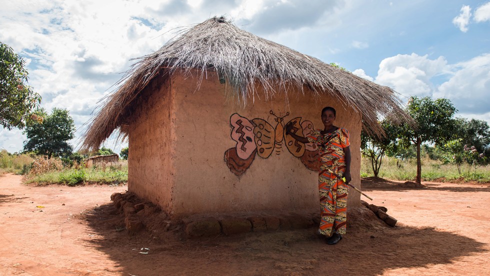 Les mains souillées de cet argile qui donne à leur sol son ocre si caractéristique, les femmes du village congolais de Makwacha peignent leurs cases de fleurs et papillons aux