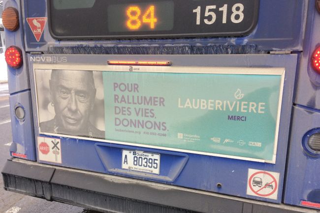 Le Réseau de transport de la Capitale, à Québec, a commencé le retrait des panneaux publicitaires de la Fondation Lauberivière qui mettait en vedette Serge Linteau, condamné pour avoir agressé