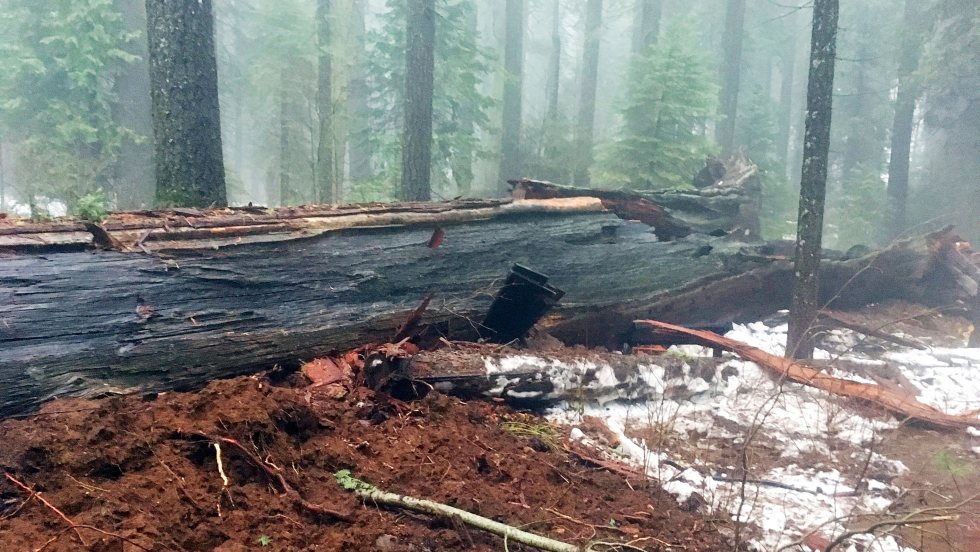 Le «Pioneer Cabin tree» dans le «Calaveras Big Trees State Park», un arbre vieux de plusieurs siècles, n’a pas survécu à une tempête qui a frappé la Californie dimanche. Le