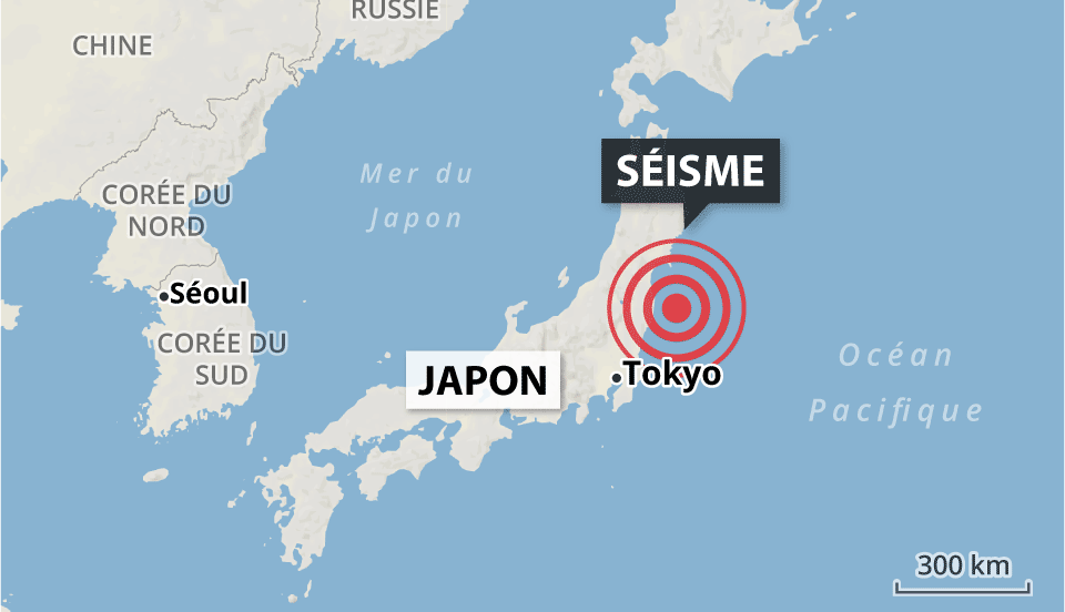 Un tremblement de terre d’une magnitude de 7,3 sur l’échelle de Richter a secoué le Japon, mardi matin (environ 16h heure de Montréal). L’épicentre du séisme se trouve dans l’océan,