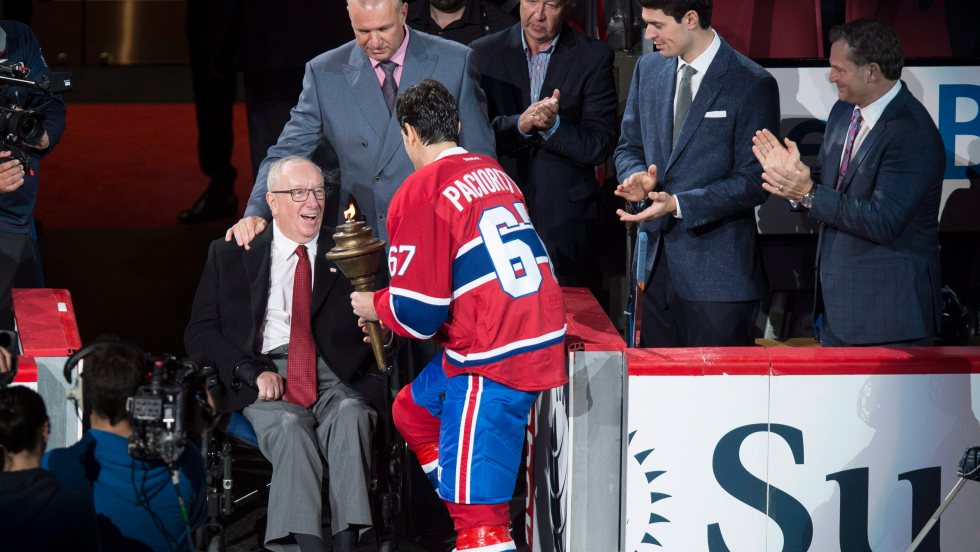 Le dernier entraîneur-chef à avoir remporté la coupe Stanley à Montréal, Jacques Demers, a remis le flambeau au capitaine Max Pacioretty lors des cérémonies d’ouverture de la saison du Canadien