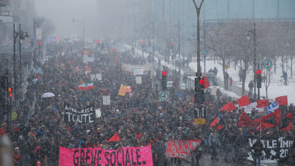 Quelques milliers de personnes, en majorité des étudiants, ont manifesté samedi après-midi dans les rues de Montréal contre les mesures d’austérité du gouvernement Couillard. Le rassemblement était organisé par les