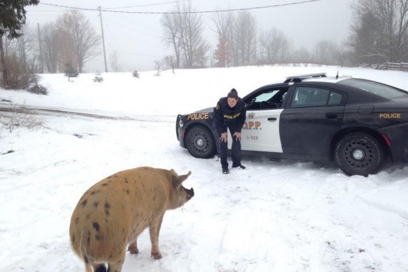 La police provinciale de l’Ontario a placé une truie en détention préventive et recherche son propriétaire. Le poste du comté de Lanark, en Ontario, tout près d’Ottawa, a eu toute