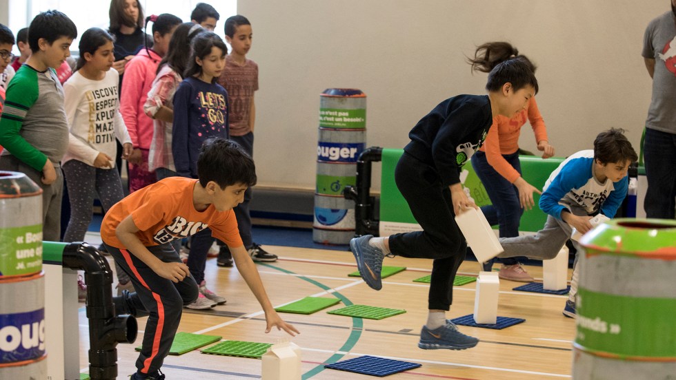 Le gymnase de l’école primaire des Grands-Êtres de Saint-Laurent a été transformé en parcours de jeux la semaine dernière afin de sensibiliser les plus de 450 élèves à la nutrition,
