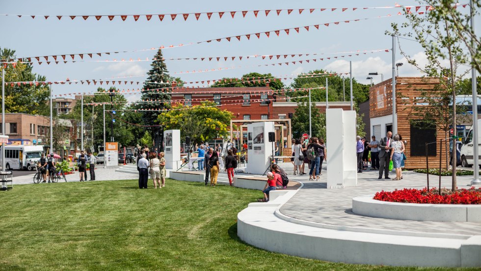 Encore un stationnement il y a moins d’un an, le tronçon du boulevard Édouard-Laurin situé près du métro Côte-Vertu est devenu une place publique verdie et décorée, qui pourra à