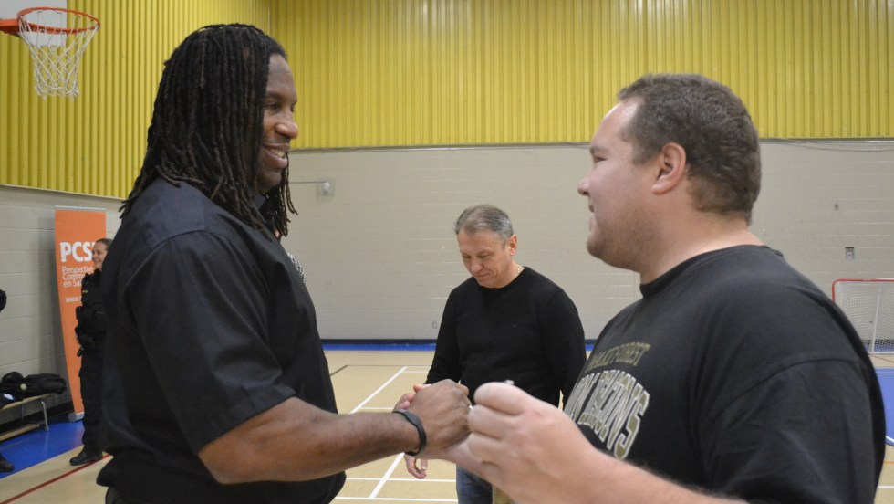 Les participants de l’activité hebdomadaire de hockey-balle de l’organisme Perspective communautaire en santé mentale (PCSM) ont eu droit à une belle surprise, la semaine dernière. Les ex-hockeyeurs Georges Laraque