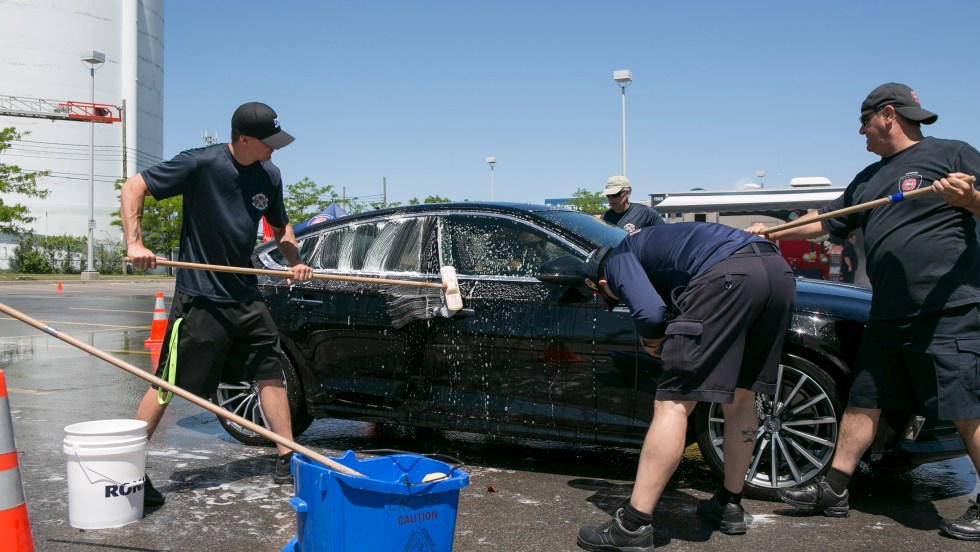 Pour une deuxième année consécutive, des pompiers de l’Ouest-de-l’Île tenaient un «lave-o-don», dimanche, à Pierrefonds afin d’amasser des fonds pour une cause sociale. L’événement, qui bénéficiait cette année à la