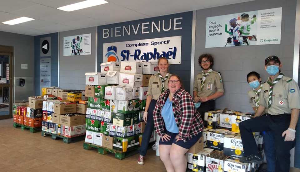 Chaque printemps, le Groupe scout 2e Saint-Raphaël effectue une collecte de canettes et bouteilles consignées pour pouvoir envoyer ses membres en camp d’été. Devant l’improbabilité que des camps se tiennent