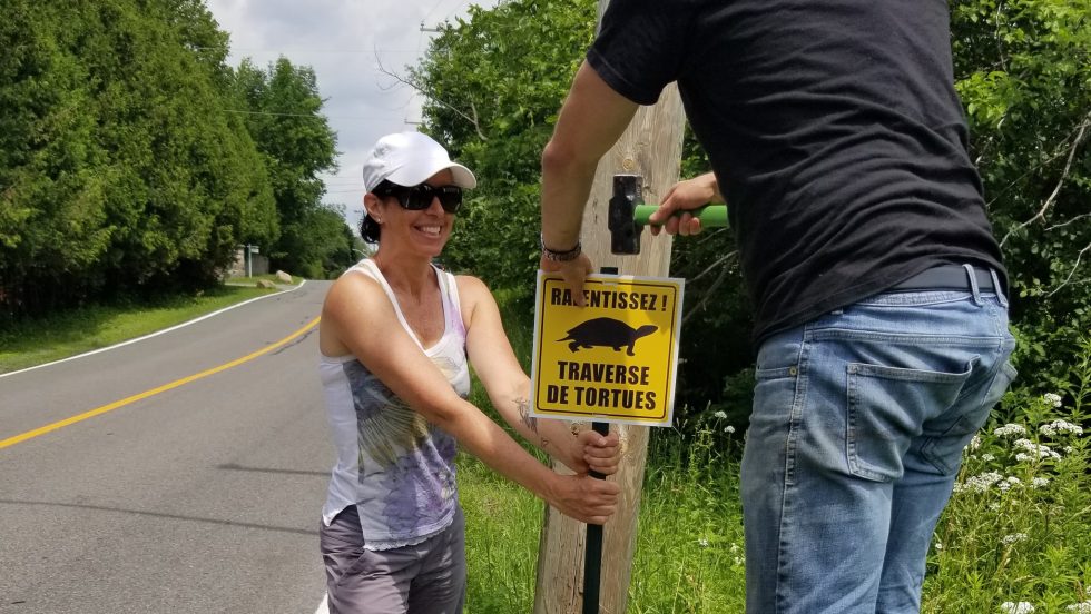 Préoccupés par le bien-être des tortues qui seraient régulièrement frappées lorsqu’elles s’aventurent sur les routes de L’Île-Bizard, des résidents de l’arrondissement ont pris l’initiative d’installer eux-mêmes des panneaux de