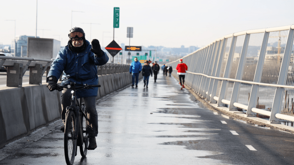 Cyclistes, piétons et même coureurs étaient nombreux à prendre part à l’inauguration de la piste multifonction du pont Samuel-De Champlain, lundi midi. Prévue en octobre, l’ouverture a été reportée à