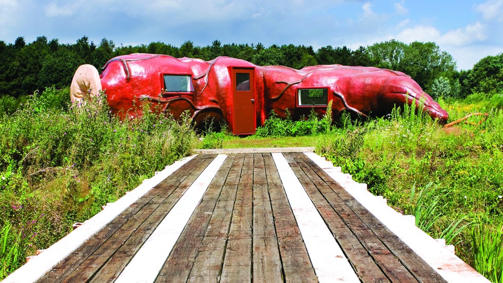 Une habitation en forme d’intestin est toute désignée pour ceux qui ont l’estomac solide. Cet hôtel d’une chambre est situé dans le parc de sculptures de la fondation Verbeke, près