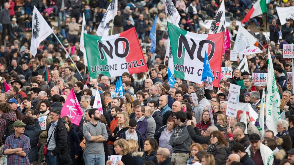 Des milliers d’Italiens marchent contre l’union des conjoints de même sexe