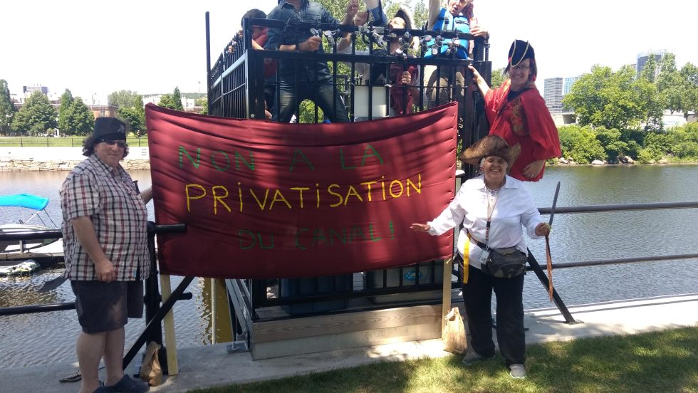 Une quarantaine de résidents de Pointe-Saint-Charles et des membres de la table de concertation Action-Gardien, déguisés en pirates, ont pris d’assaut le canal de Lachine, samedi. À bord de leurs