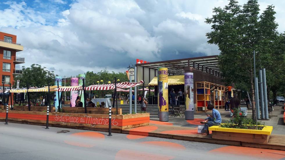 L’arrondissement a procédé à l’inauguration officielle de la Place du marché, un nouvel espace éphémère de rencontre, le jour même de la Fête nationale. Le mauvais temps n’aura pas eu