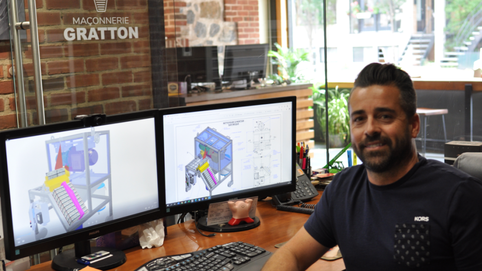 Le président de Maçonnerie Gratton, Tommy Bouillon, a co-inventé une machine recyclant les briques sur un chantier pour ensuite les réutiliser sur le même site. Cette invention permet d’éviter le