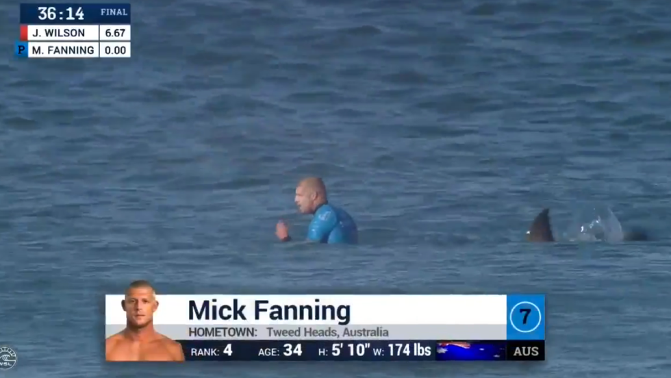 Le surfeur Mick Fanning a eu la peur de sa vie dimanche durant la finale d’une compétition de surf disputée en Afrique du Sud. Il attendait patiemment son tour quand