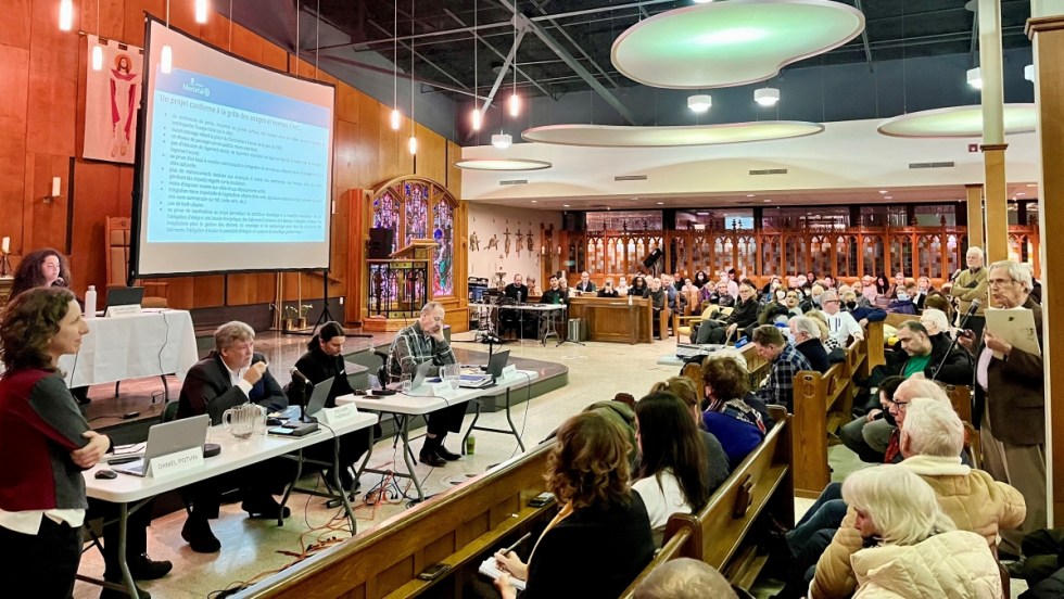 Des centaines de résidents de L’Île-des-Sœurs se sont présentés à la consultation publique sur Cité de l’Île, vaste projet immobilier controversé qui sera adjacent à la future gare du REM.