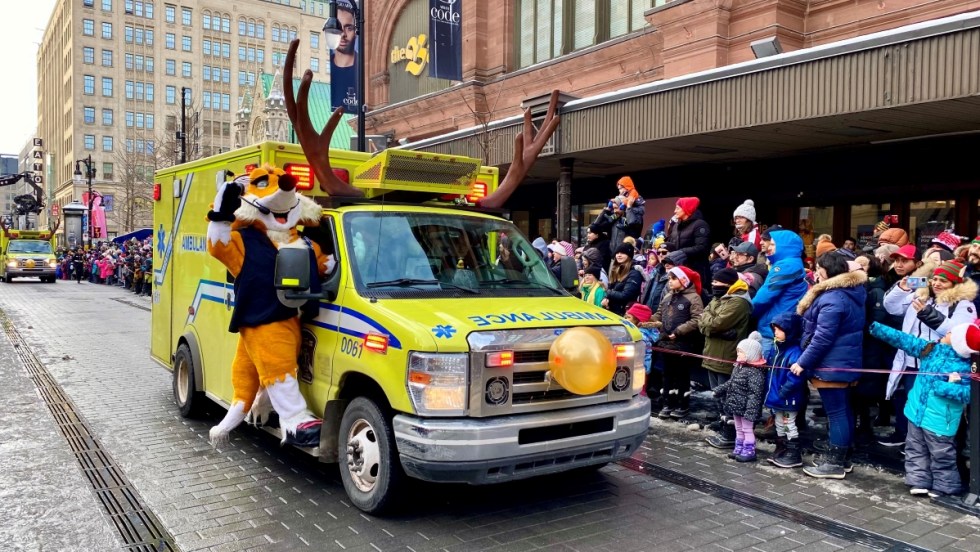 Les employés d’Urgences-santé ont bravé le froid pour que des enfants hospitalisés et leur famille puissent assister au défilé du père Noël.