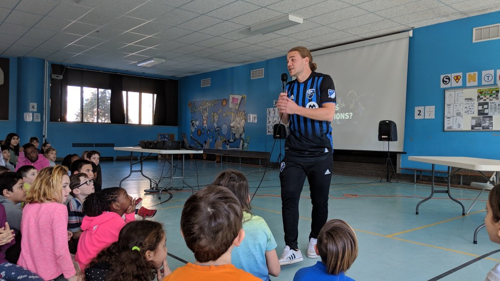 Quelque 140 jeunes de l’école primaire Philippe-Morin de Lachine ont reçu la visite du milieu de terrain de l’Impact de Montréal, Samuel Piette. Ensemble, ils ont parlé de persévérance scolaire,