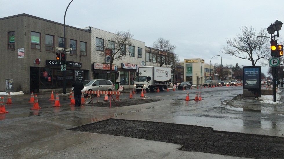 La rue Jean-Talon est partiellement fermée à la hauteur de Wiseman, près du boulevard de l’Acadie, en raison de deux bris de conduite d’aqueduc survenus lundi dans Parc-Extension. Les travaux publics,