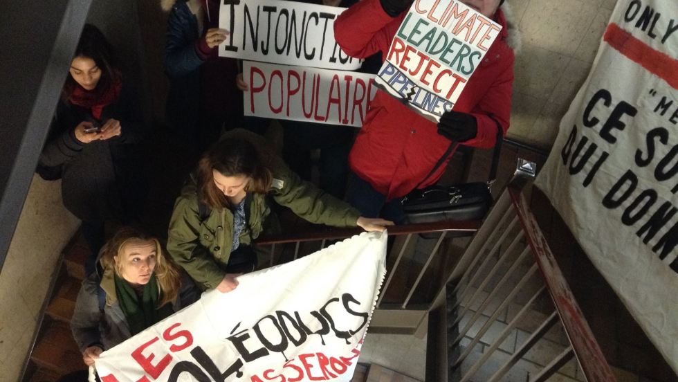 Une vingtaine de citoyens se sont introduits dans les locaux de circonscription du premier ministre Justin Trudeau hier après-midi, afin de demander le report des consultations publiques sur le