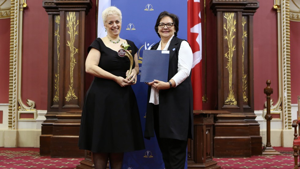Enseignante de français au Cégep André-Laurendeau, Julie Roberge a reçu le Prix Paul-Gérin Lajoie du ministère de l’Enseignement supérieur le 2 juin à l’Assemblée nationale du Québec. Ce prix reconnaît