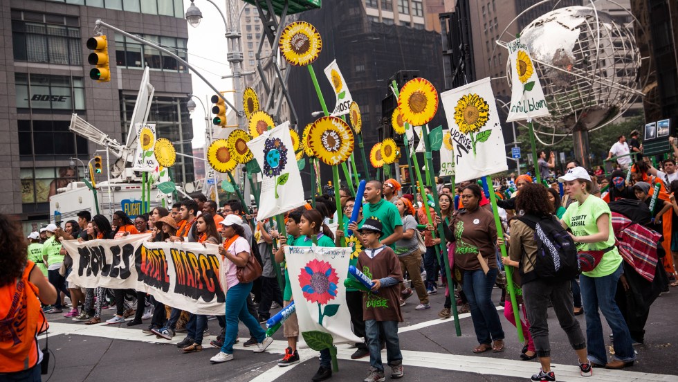 Le rassemblement, baptisé Marche des peuples pour le climat, s’inscrivait dans le cadre d’une série d’événements organisés dimanche à travers le monde, pour réclamer des gestes concrets contre le réchauffement