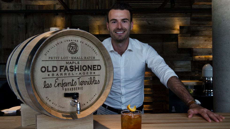 Le maître distillateur de 1769 Distillerie, Andrew Mikus, a imaginé un cocktail «old fashioned» à base de whisky à l’érable vieilli en fût de chêne. Versé directement à partir d’un