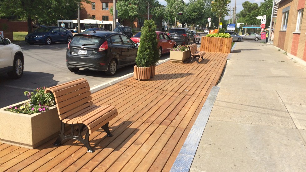 La première phase des travaux de réaménagement de la place Chaumont avec l’installation de mobilier urbain, dont des bancs, des plantations, des supports à vélo et des «espaces terrasses» temporaires,