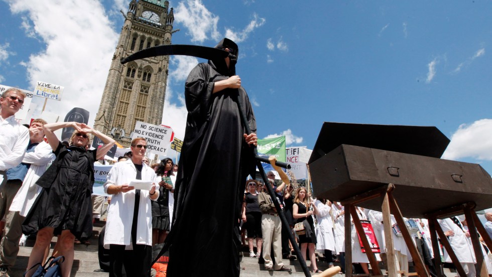 Mercredi dernier, plus de 1 000 scientifiques ont défilé dans les rues d’Ottawa. Vêtus de sarraus blancs, ils ont défilé en cortège funèbre pour dénoncer la «mort de la preuve